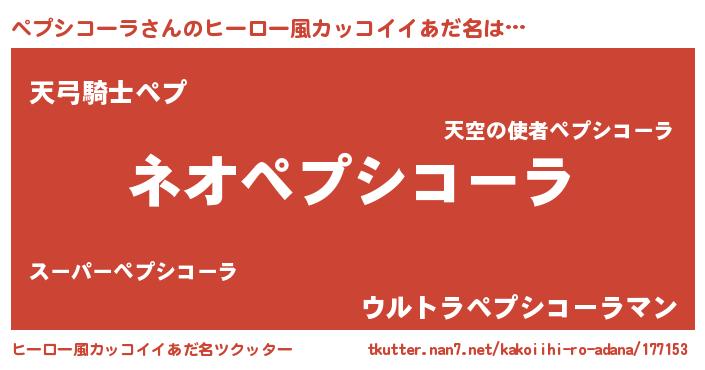 | 男性向けラノベタイトル風あだ名 | 『誰もが恐れるあのペプシコーラが、ぼくの専属メイドになるようです。』 |