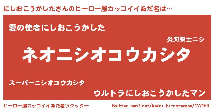 | 男性向けラノベタイトル風あだ名 | 『うちのにしおこうかしたが世界を掌握している!』 |