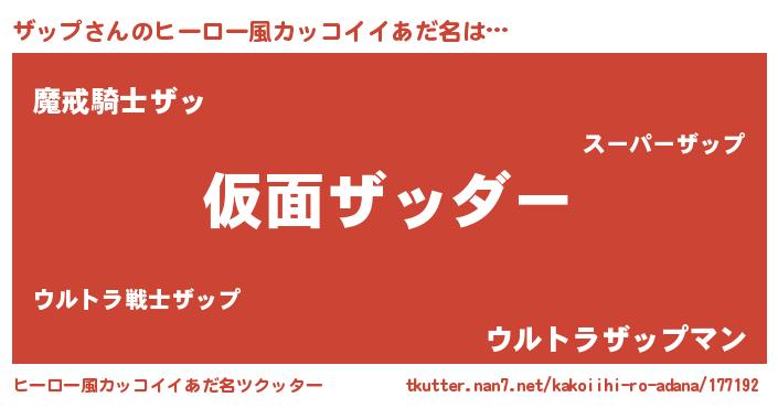 | 女子向けラノベタイトル風あだ名 | 『ザップの玉の輿計画!』 |