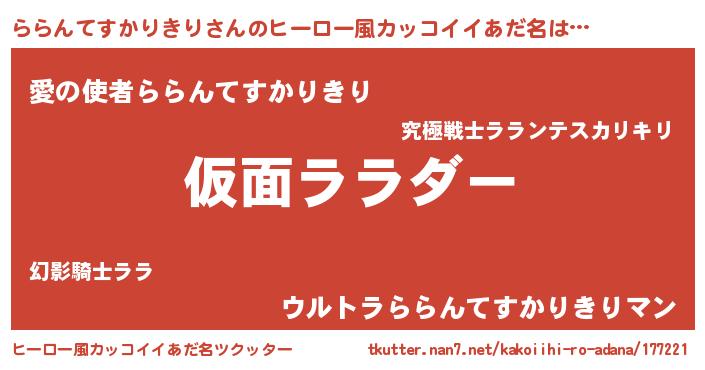 | 料理風あだ名 | 『ららんてすかりきりごはん』 |
