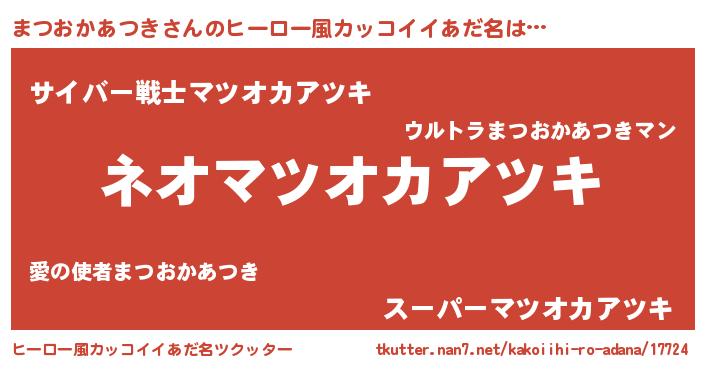 | 男性向けラノベタイトル風あだ名 | 『転生したらまつおかあつきだった件』 |