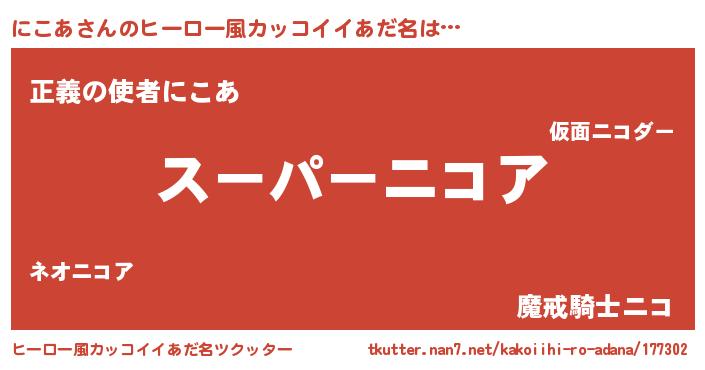 | 男性向けラノベタイトル風あだ名 | 『にこあの憂鬱』『ニコアスレイヤー』 |