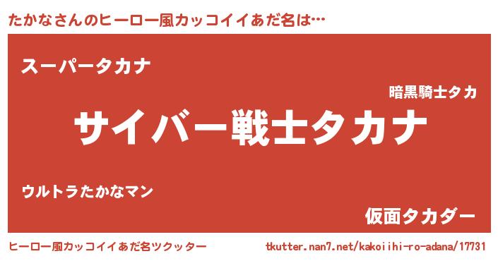 たかなさんのヒーロー風カッコイイあだ名をツクッター!