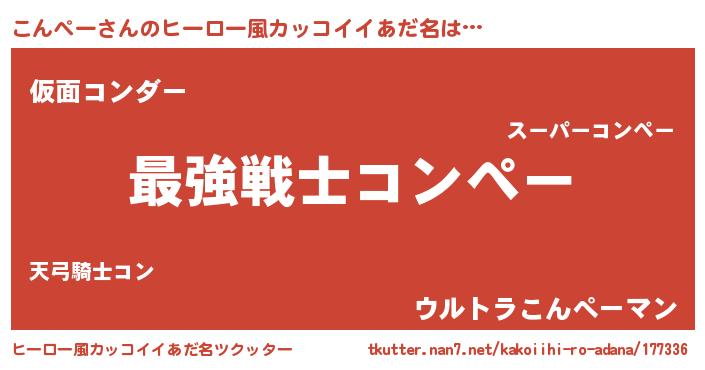 | 男性向けラノベタイトル風あだ名 | 『Re:こんぺーから始める異世界生活』 |