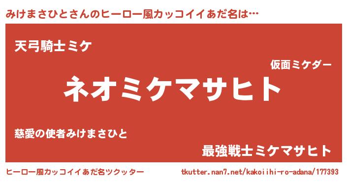 | ヘコむあだ名 | 『みけまさひと(笑)』『みけを』 |
