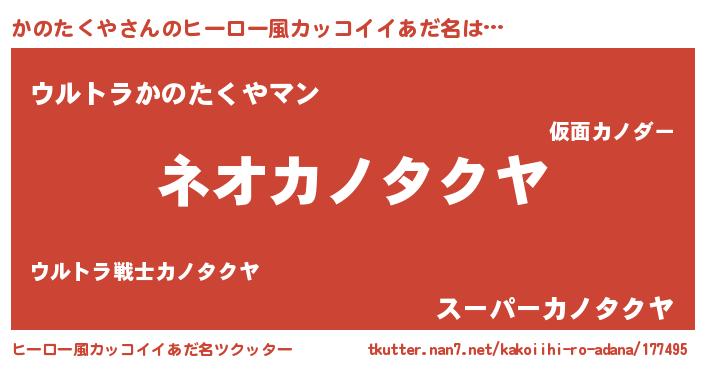 | 男性向けラノベタイトル風あだ名 | 『かのたくやという概念が存在しない退屈な世界 』 |