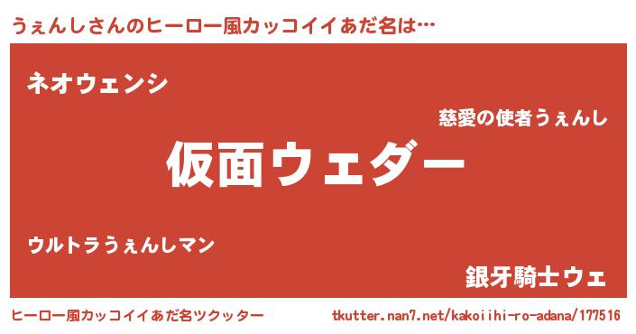 | 男性向けラノベタイトル風あだ名 | 『魔弾の王とうぇんし』 |