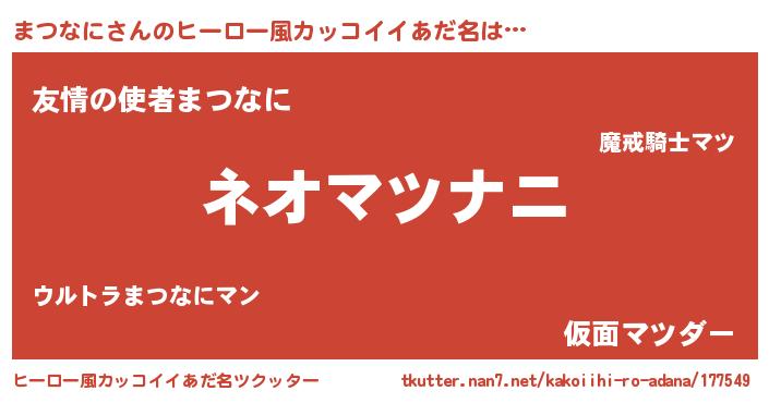 | 胡散臭い通販商品みたいなあだ名 | 『来世でも幸せになれる健康食品…その名も「まつなに」』 |