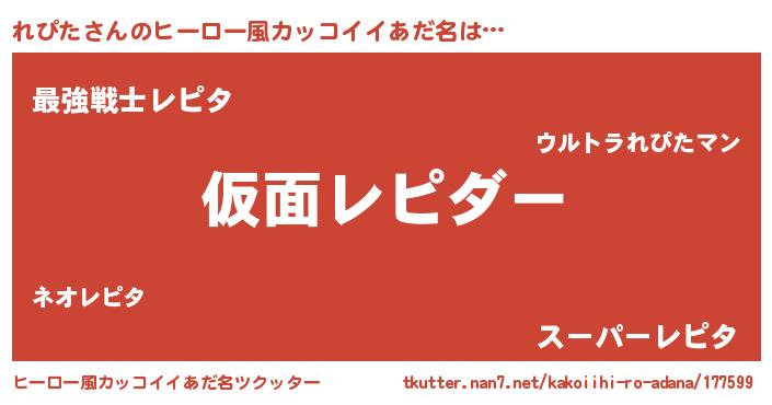 | 男性向けラノベタイトル風あだ名 | 『この素晴らしい世界にれぴたを!』 |