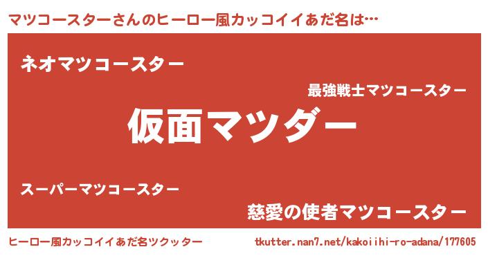 | 男性向けラノベタイトル風あだ名 | 『この素晴らしい世界にマツコースターを!』 |