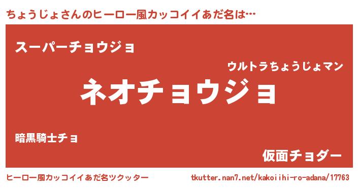 | ポケモン風あだ名 | 『ゼニチョ』『チョゴンZ』『チーョイ』 |
