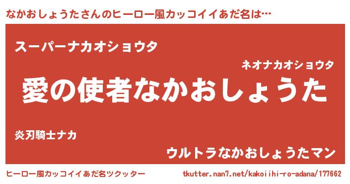 | 男性向けラノベタイトル風あだ名 | 『転生したらなかおしょうただった件』 |