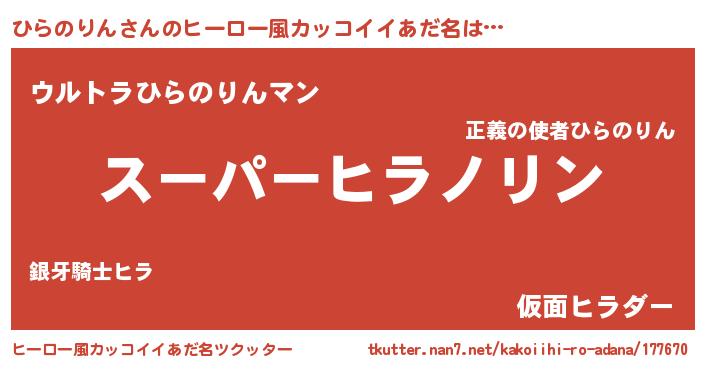| 胡散臭い通販商品みたいなあだ名 | 『必ず成功するブレスレット…その名も「ひらのりん」』 |