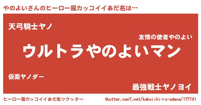 | 男性向けラノベタイトル風あだ名 | 『うちの娘の為ならば、俺はもしかしたらやのよいも倒せるかもしれない。』 |