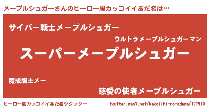 | 胡散臭い通販商品みたいなあだ名 | 『必ず成功する霊験あらたかなお札…その名も「メープルシュガー」』 |