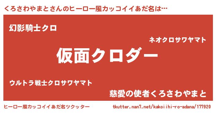 | 男性向けラノベタイトル風あだ名 | 『この素晴らしい世界にくろさわやまとを!』 |