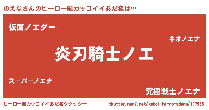 | ポケモン風あだ名 | 『ノエゴンZ』『ヒノエナ』『ノーエイ』 |