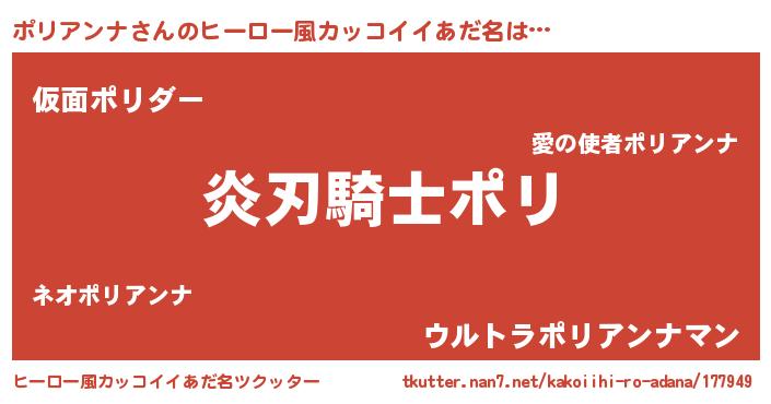 | 男性向けラノベタイトル風あだ名 | 『ポリアンナの嫁は女の子じゃないと思った?』 |