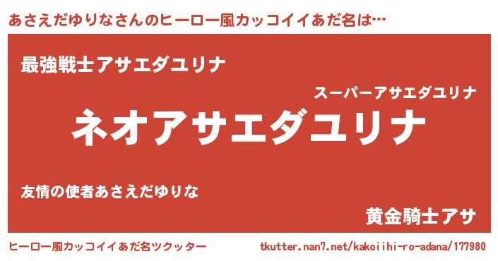 | 女子向けラノベタイトル風あだ名 | 『あさえだゆりなの玉の輿計画!』 |