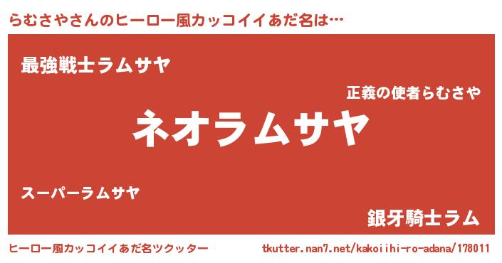| 男性向けラノベタイトル風あだ名 | 『らむさやに滅ぼされるだけの簡単なお仕事です』 |