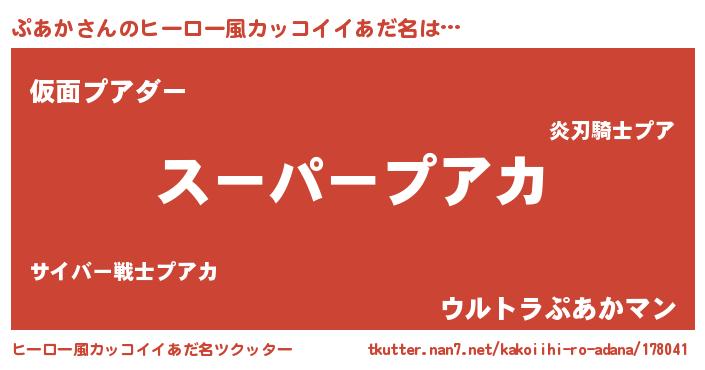 | 女子向けラノベタイトル風あだ名 | 『(仮)ぷあかのやんごとなき事情』 |