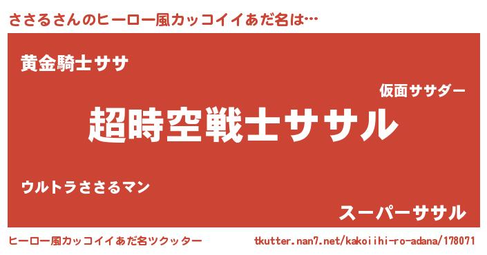 | 男性向けラノベタイトル風あだ名 | 『魔法科高校のささる』『緋弾のササル』 |