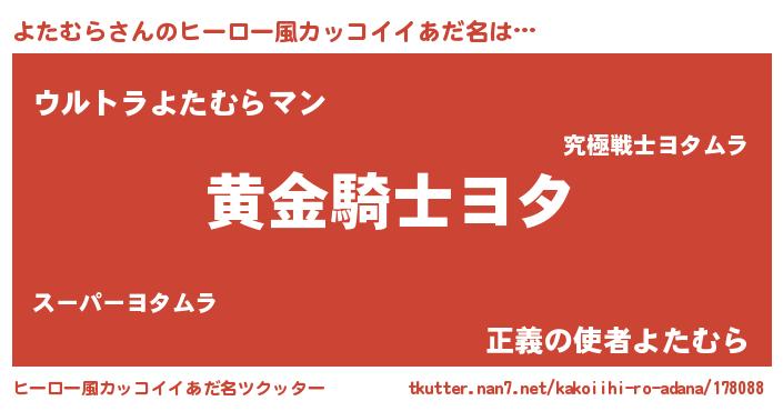 | ポケモン風あだ名 | 『ヒヨタムラ』『ヨタムダネ』 |