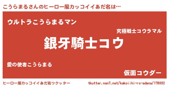| 意味不明あだ名 | 『とにかく怪しいこうらまる』 |