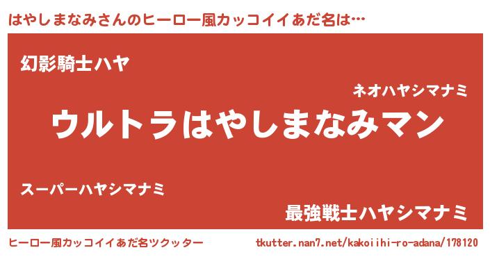 | 伝説のあだ名 | 『最古の忍者はやしまなみ』 |