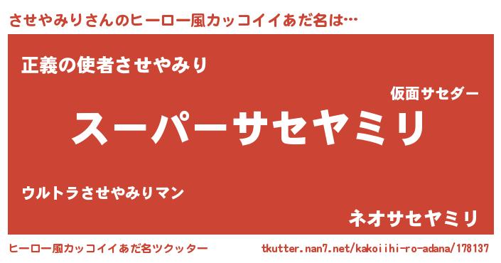 | ヘコむあだ名 | 『させにゅー』『させやみり(爆)』 |