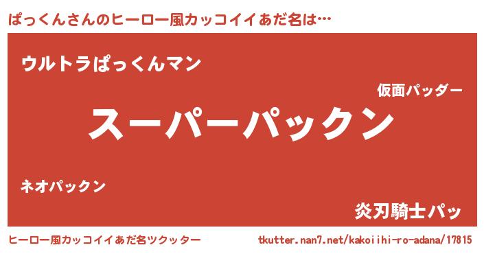 | ファンタジー風あだ名 | 『パッフェル』『エターナルパックンー』 |