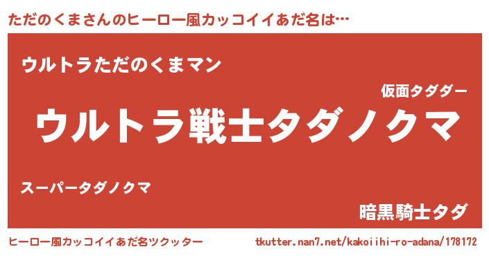 | 意味不明あだ名 | 『自称ただのくま』『ニラ科ただのくま属』 |