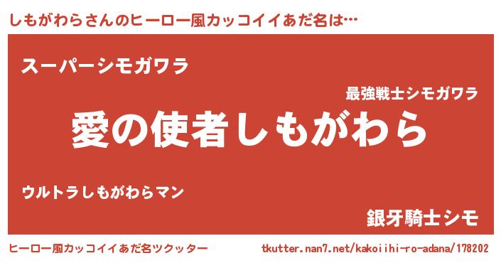 | 女子向けラノベタイトル風あだ名 | 『しもがわら恋絵巻』 |