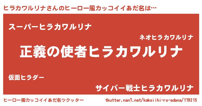 | 料理風あだ名 | 『ヒラカワルリナごはん』 |