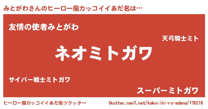 | ヘコむあだ名 | 『みとがわ(爆)』『みとっふぃ~』 |