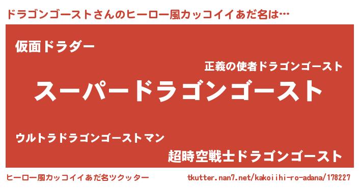 | 男性向けラノベタイトル風あだ名 | 『転生したらドラゴンゴーストだった件』 |