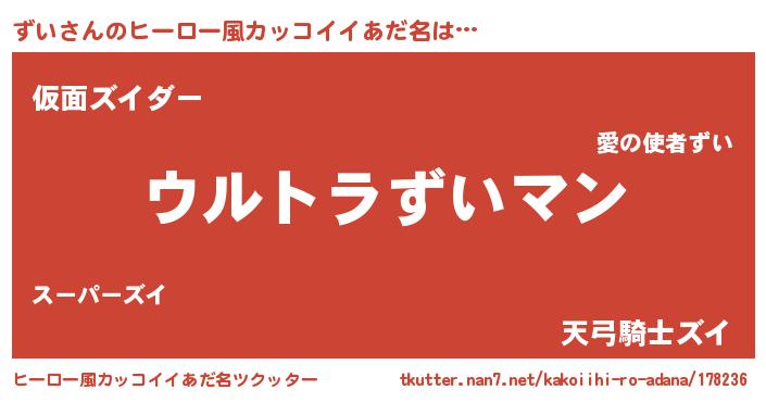 | 男性向けラノベタイトル風あだ名 | 『ずいに滅ぼされるだけの簡単なお仕事です』 |
