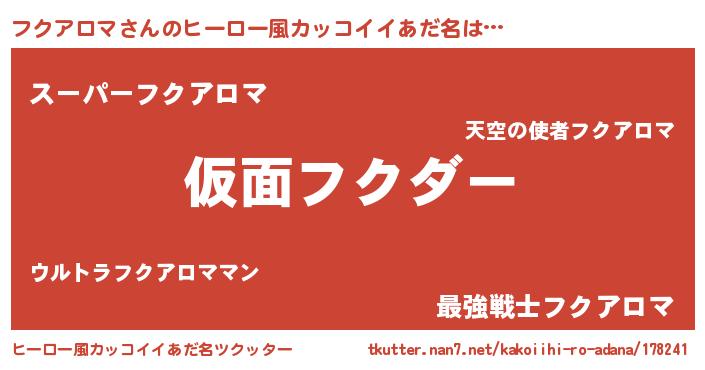 | 意味不明あだ名 | 『住所不定無職フクアロマ(50歳)』 |