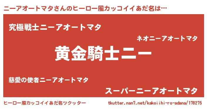 | ポケモン風あだ名 | 『ヒニーアオートマタ』『ニーゴンZ』 |