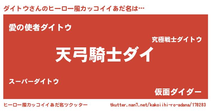 | 男性向けラノベタイトル風あだ名 | 『うちのダイトウが世界を掌握している!』 |