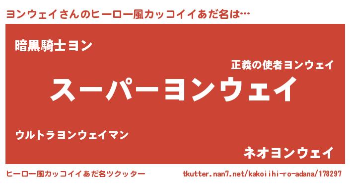 | 男性向けラノベタイトル風あだ名 | 『ヨンウェイの憂鬱』 |