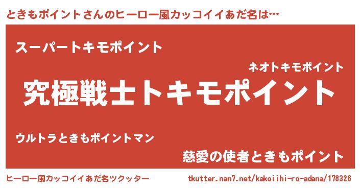 | 男性向けラノベタイトル風あだ名 | 『Re:ときもポイントから始める異世界生活』 |