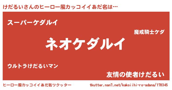 | ヘコむあだ名 | 『けだるい(遠い目)』『けだっふぃ~』 |