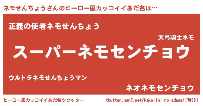 | 男性向けラノベタイトル風あだ名 | 『ネモせんちょうの憂鬱』 |