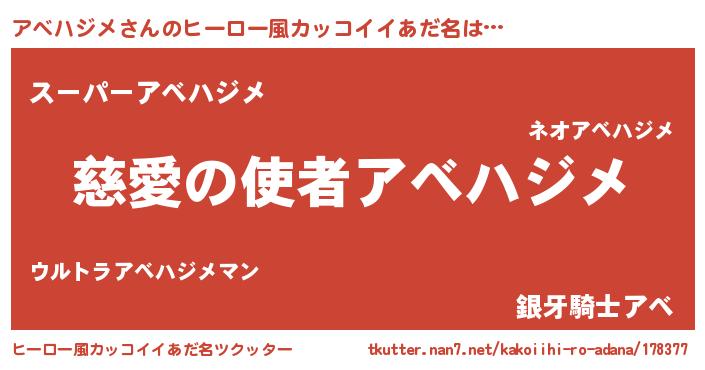 | 男性向けラノベタイトル風あだ名 | 『ノーゲーム・ノーアベハジメ』 |