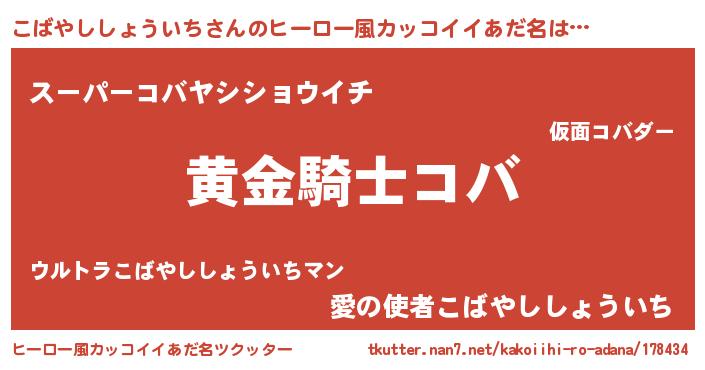 | 胡散臭い通販商品みたいなあだ名 | 『信頼と実績のサプリメント…その名も「こばやししょういち」』 |