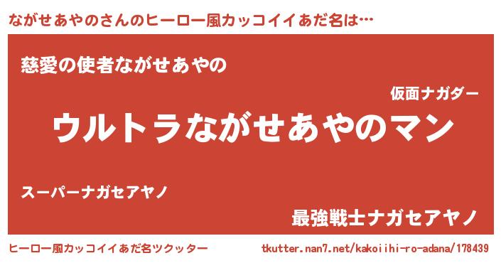| 女子向けラノベタイトル風あだ名 | 『ながせあやのの玉の輿計画!』 |