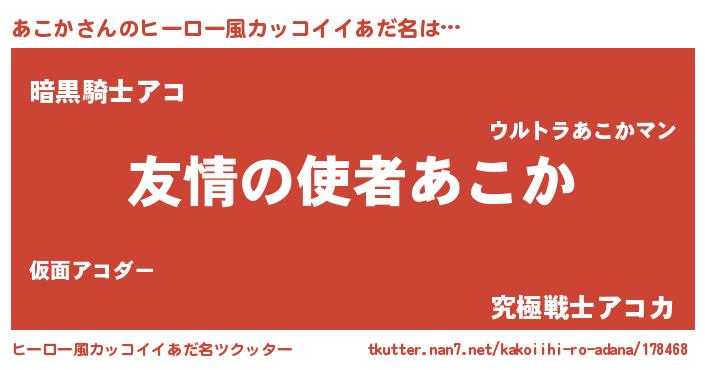 | 女子向けラノベタイトル風あだ名 | 『あこか夫妻のなれそめ』『闇のあこか』 |