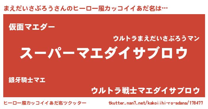 | 男性向けラノベタイトル風あだ名 | 『冴えないまえだいさぶろうの育てかた』 |