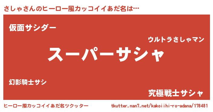 | 意味不明あだ名 | 『ペロリンさしゃ』『自称さしゃ』 |